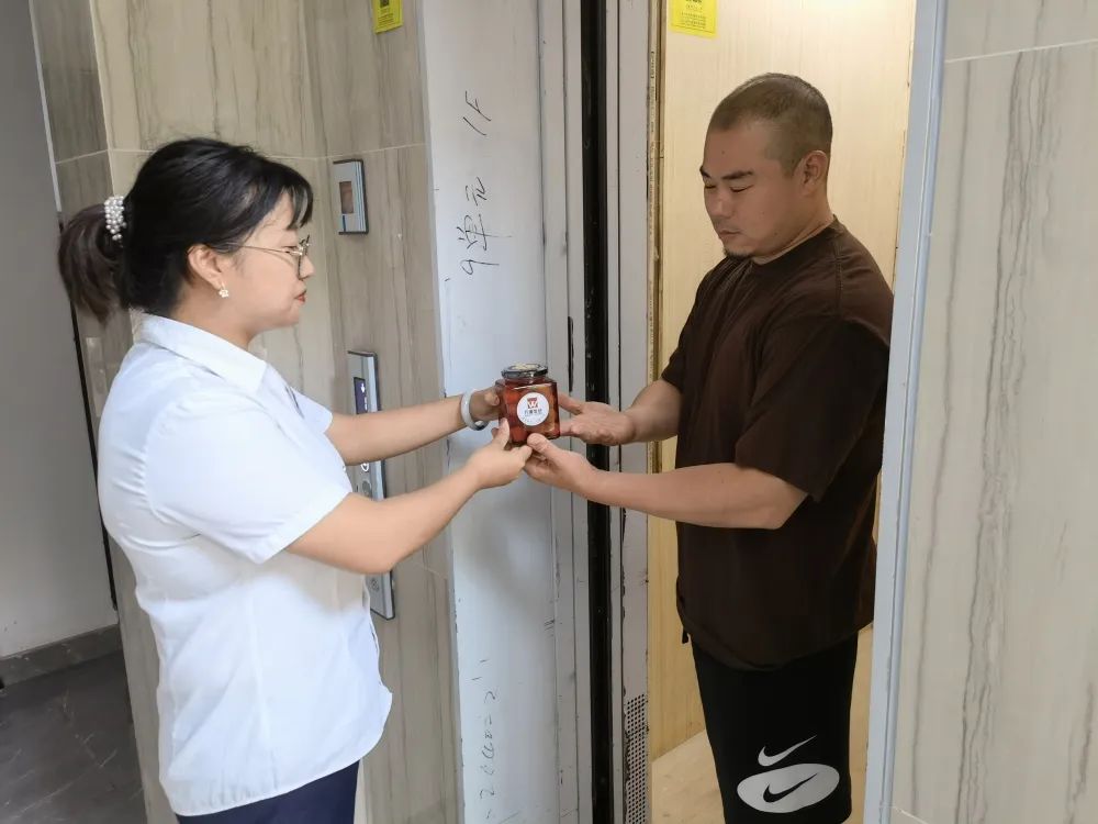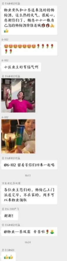 上門(mén)向業(yè)主送上一瓶物業(yè)自制的楊梅酒,與業(yè)主們一起分享豐收的收獲和喜悅,共品美酒佳釀。這一舉動(dòng)得到了業(yè)主們的肯定與贊許。