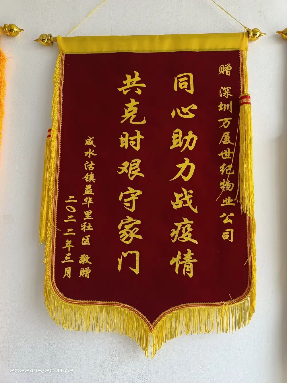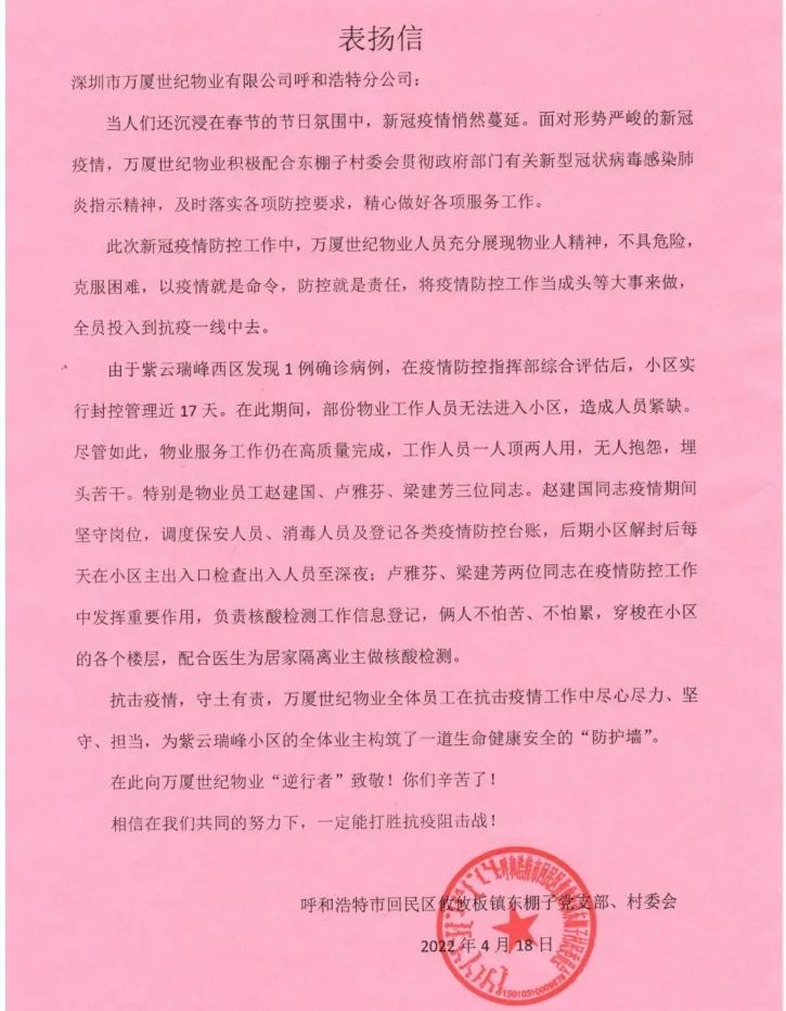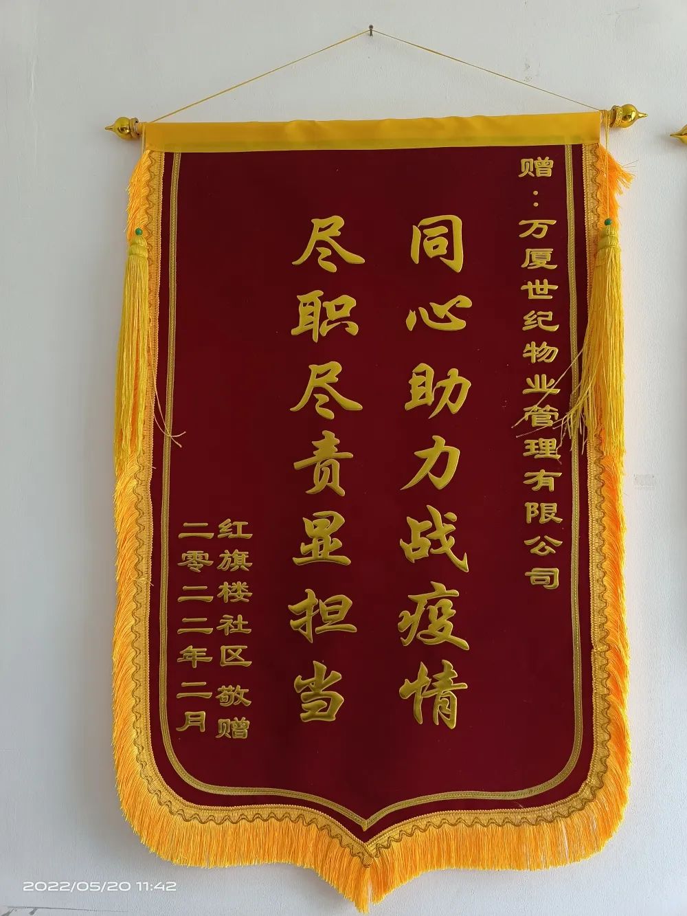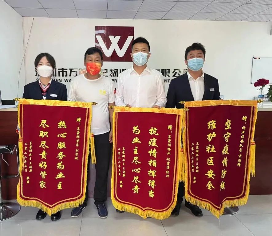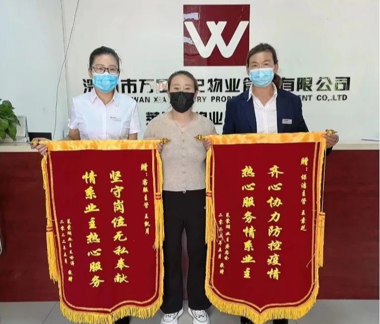 在這場沒有硝煙的戰(zhàn)爭中 大家齊心協(xié)力、團結(jié)一致 不分晝夜奔波在疫情防控第一線 贏得社區(qū)和居民的一致好評 業(yè)主們?yōu)楸砀兄x 贈送了多面錦旗