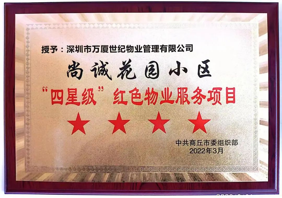 “四星級紅色物業(yè)服務項目”榮譽