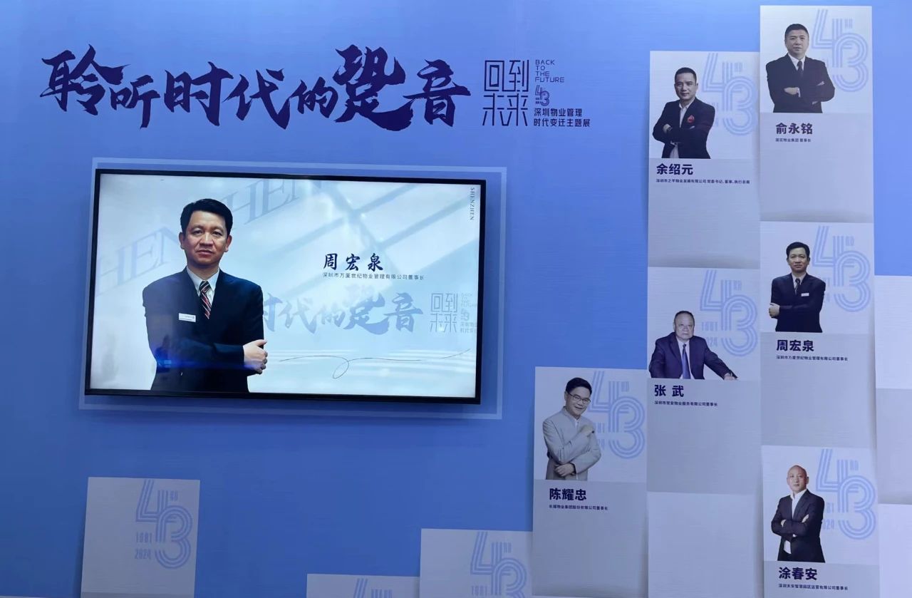董事長(zhǎng)周宏泉作為深圳物業(yè)行業(yè)開拓者,在深圳物業(yè)行業(yè)“聆聽時(shí)代的跫音”展覽區(qū),成為深圳物業(yè)行業(yè)發(fā)展的品牌符號(hào)。