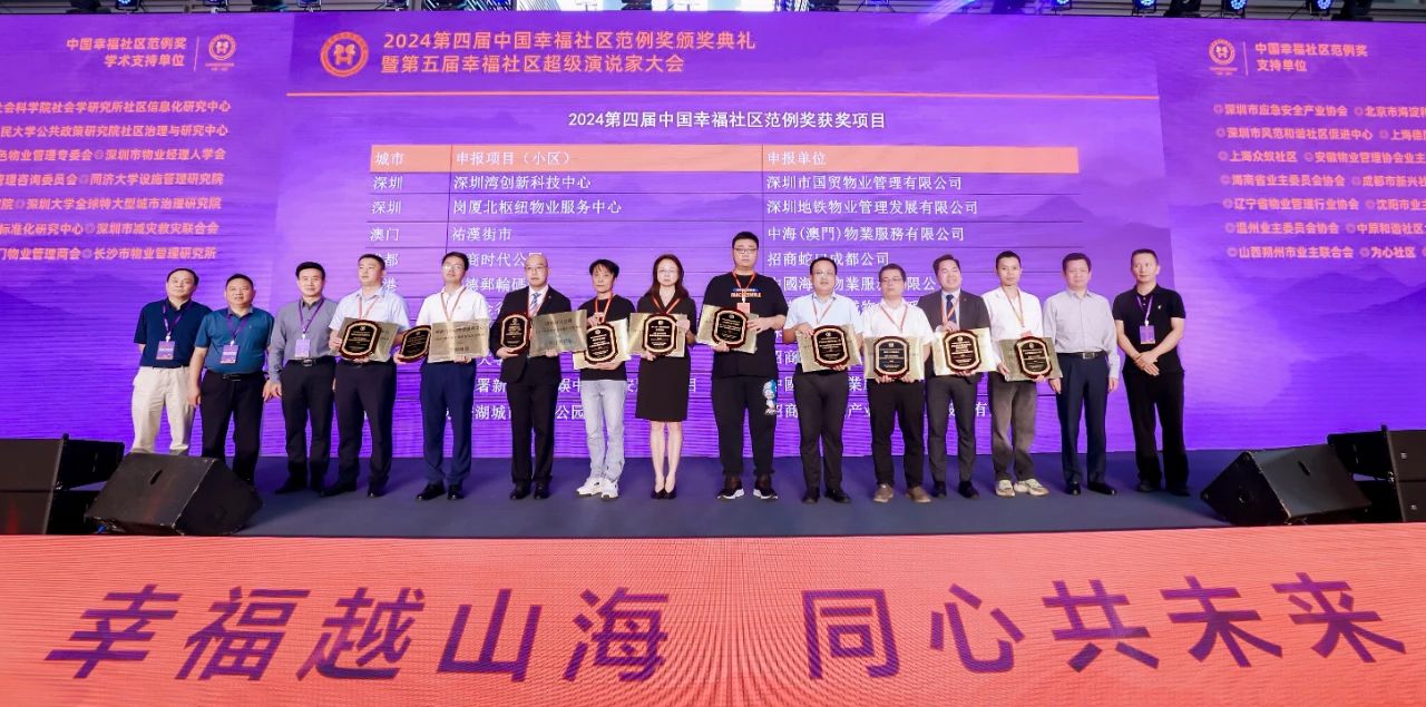 周宏泉董事長(zhǎng)為2024年中國(guó)幸福社區(qū)范例獎(jiǎng)獲得者頒獎(jiǎng)。